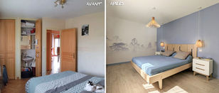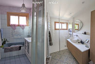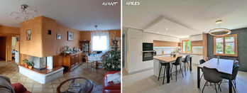 Une rénovation complète du rez-de-chaussée : changement de place de la cuisine, agrandissement de la chambre, rafraîchissement de la salle de bains et du dressing, éléments menuisés sur mesure... Même le chat a son petit espace, l'avez vous remarqué ?
